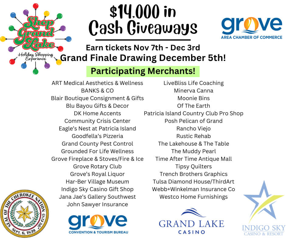 For more information on this exciting holiday experience, please contact the Grove Area Chamber of Commerce at 918-786-9079.